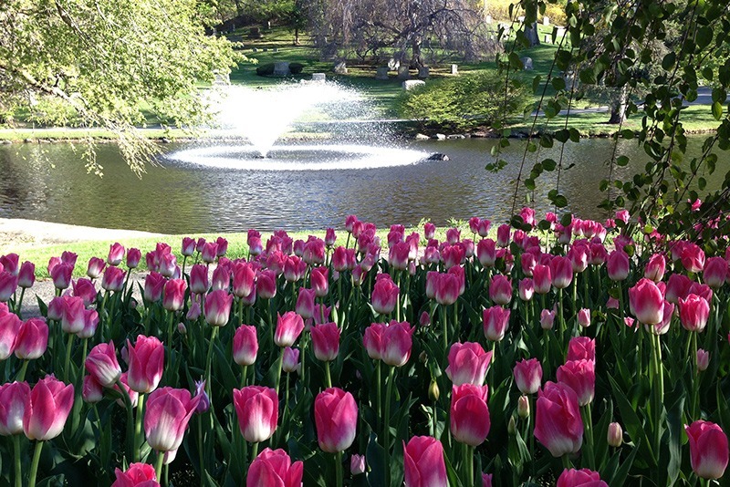 As members of the American Public Gardens Association, Newton Cemetery & Arboretum recognizes the importance of horticulture in public gardens. In the spring, pansies and cheerful tulip and daffodil bulbs abound. Plants grown in the cemetery greenhouses by the professional horticultural staff provide bursts of color throughout the summer months. Pockets of shade plantings provide visitors with numerous points of interest on their stroll through the cemetery grounds.